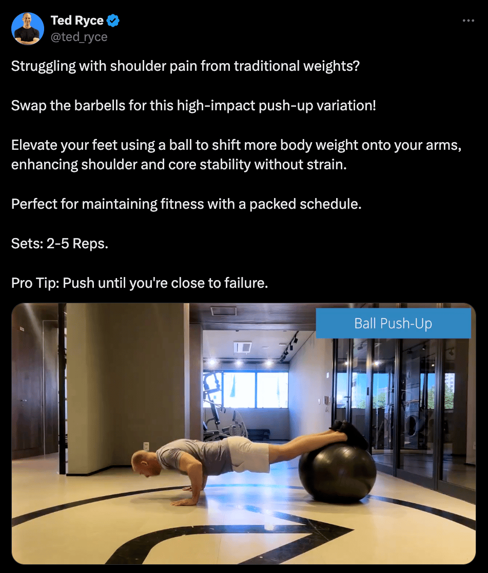 Elevate your feet using a ball to shift more body weight onto your arms, enhancing shoulder and core stability without strain.